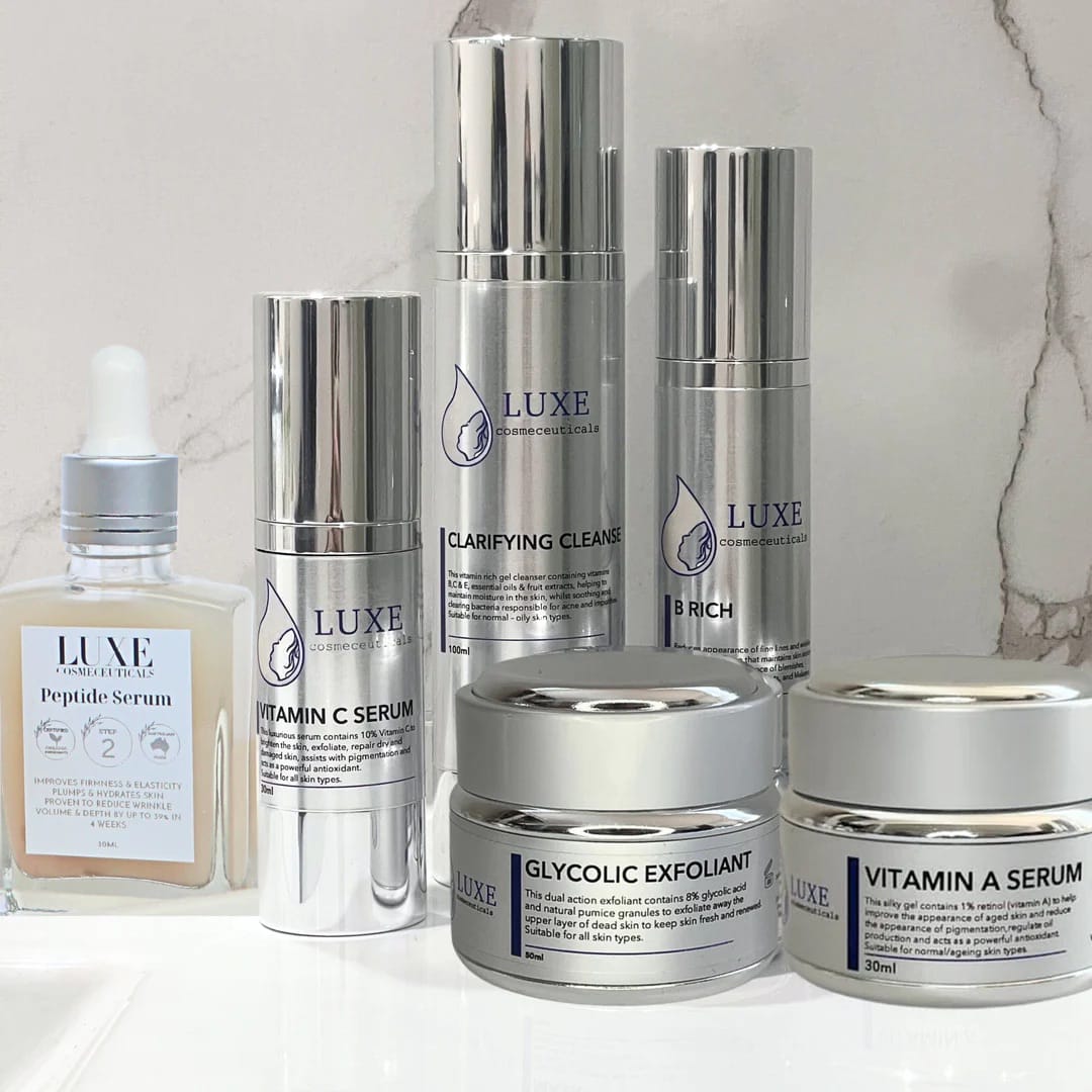 Clarifying Cleanse, Vitamin A Serum, Vitamin C Serum, B Rich